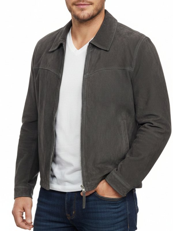 Men’s Suede Leather Jacket | Premium Charcoal Grey Zip-Up Coat