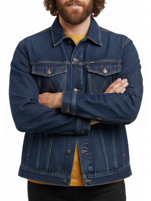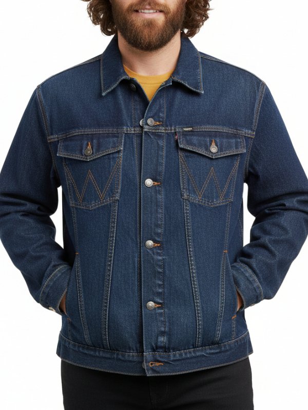 - Signature Trucker Styling: Features the traditional dual button-flap chest pockets with decorative “W” stitching and vertical welt seams.