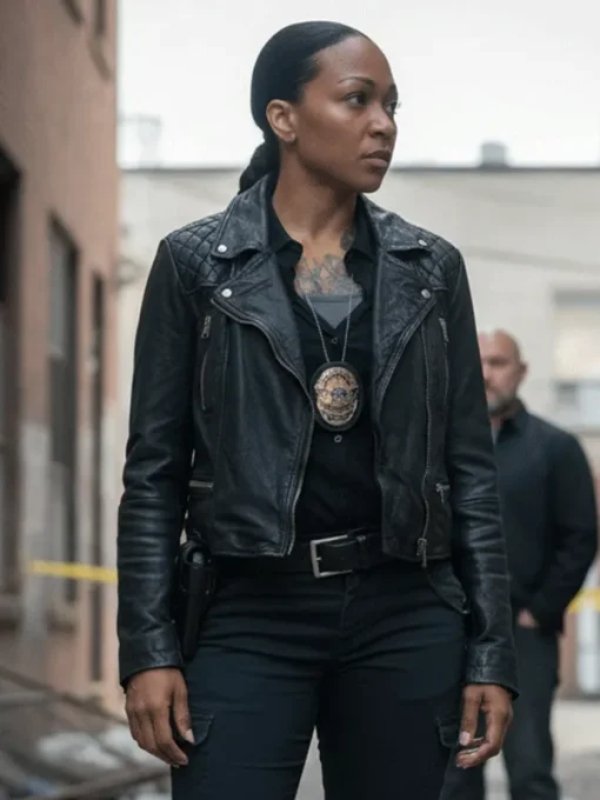 Recreated – Kali Reis Movie Mercy 2026 Jacqueline ‘JAQ’ Diallo Black Biker Leather Jacket