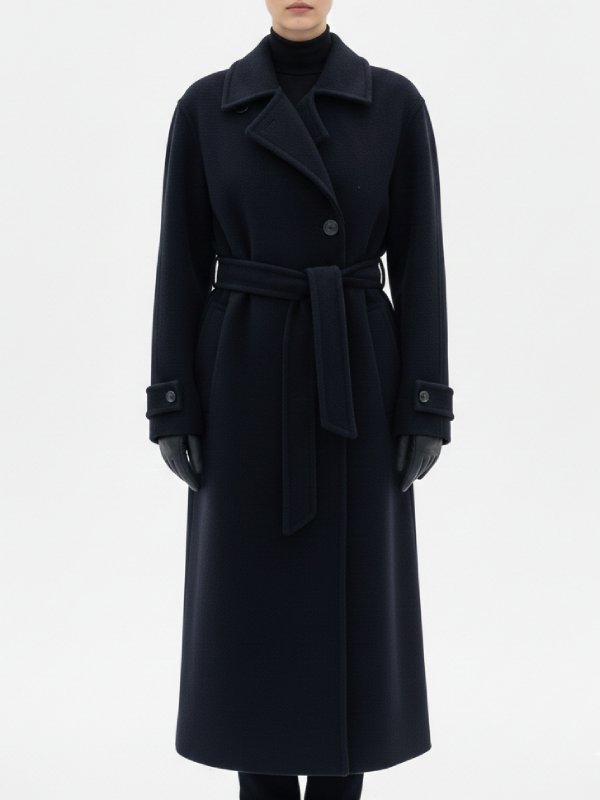 Women’s Navy Wool Long Coat | Elegant Winter Trench Jacket